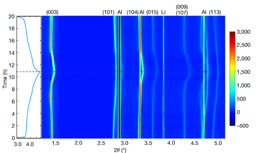 Our group has access to synchrotron beamline and is adept at in operando characterizations using synchrotron. The high intensity of the beamline greatly shortens the signal-collecting time and made operando measurement possible. Such in operando measurement presents valuable information because it avoids any complication caused by battery disassembling and provides us with first-hand information about the battery.
